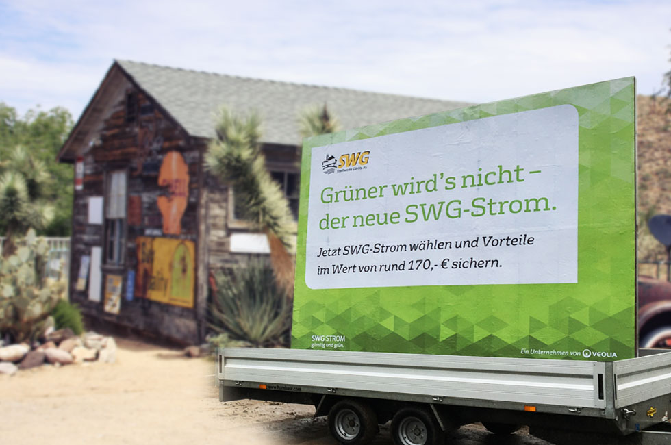 Sie möchten Ihre Plakate oder Großflächen gestalten und drucken lassen? Sprechen Sie uns an. Wir kennen die richtigen PARTNER.