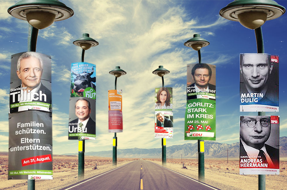 Perfekt plazierte Wahlwerbung auf Kunststoffplakaten, Papp-Plakaten,